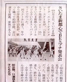「BESプチ発表会 vol.3 」開催。「朝日新聞 埼玉少年少女スポーツ」にも掲載。